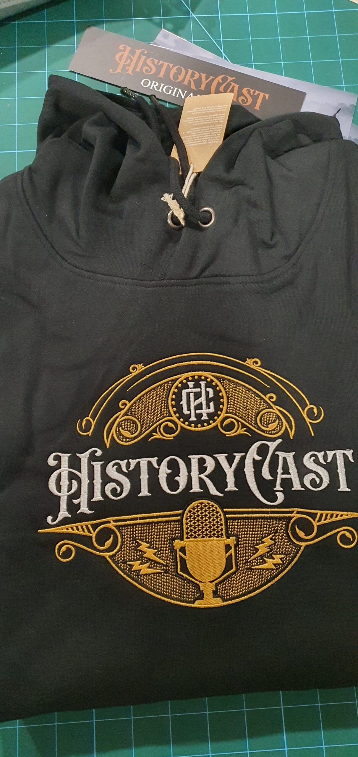 Prelepi „hudi“ duks sa kapuljačom sa izvezenim HistoryCast znakom na prednjoj strani.
